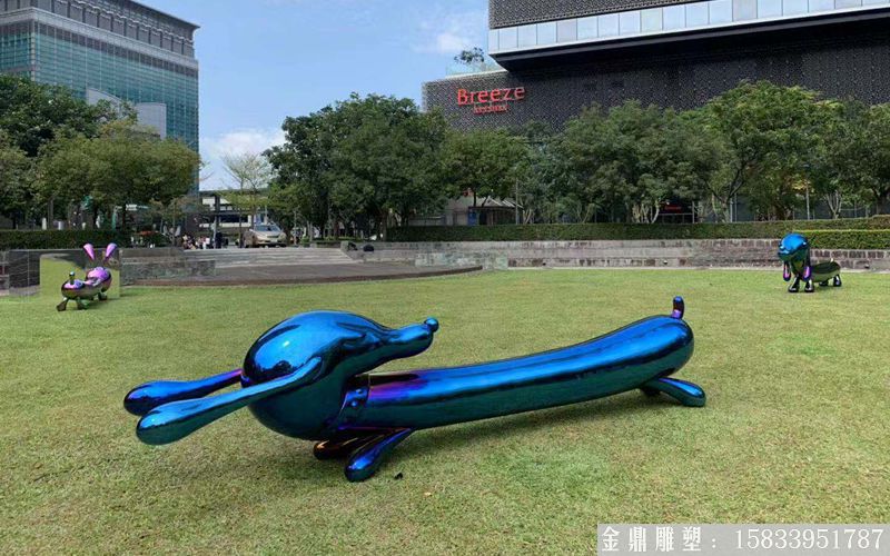 广场彩色不锈钢狗雕塑 动物雕塑厂家