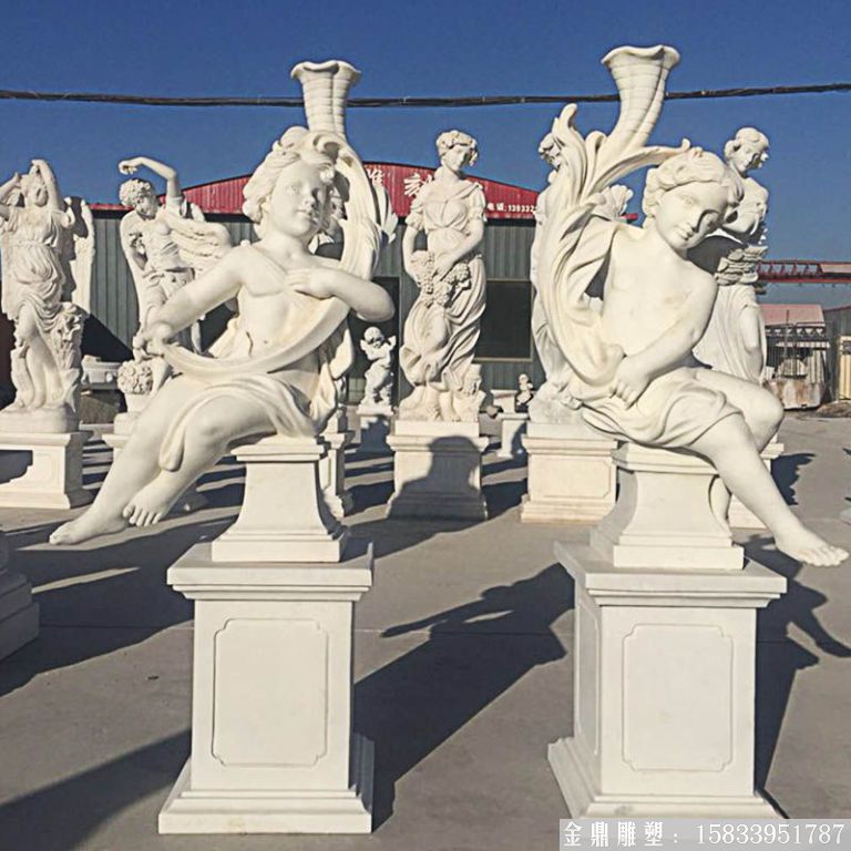 石雕天使 定制汉白玉西方人物雕塑工艺品欧式雕像小天使园林摆件